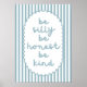 Bring positivity and inspiration into your space with this Be Silly Be Honest Be Kind in calming blue-green tones. Perfect for bedrooms, offices, or as a thoughtful gift for friends, family, or anyone who loves uplifting quotes.