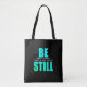 Psalm 46:10a "Be Still and Know that I Am God" Christian Quote Church Tote Bag. Neon blue design. Makes a great gift for everyone who loves God and Bible Scripture verses on things.