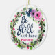 Be Still And Know Pink Floral Bible Verse Ceramic Ornament