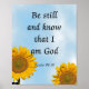 Psalm 46:10. Be still and know that I am God. An inspirational scripture with bright sunflowers.