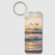 Keychain with sunrise over the ocean and "Be Still And Know That I Am God Psalms 46:10" written on it. AI generated.