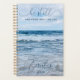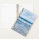 Uplifting daily planner featuring the KJV Bible verse from Psalm 46:10 "Be still and know that I am God" for a mini meditation on the go each time you glance at your planner while organising your daily/monthly schedule. "Be Still and know that I am God" inspirational quote in an elegant modern script font at the top of planner and personalised with your name and year at the bottom of planner cover. Breathtaking blue and white photography background of rolling blue waves with white caps along a beach shoreline.
