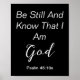 Psalm 46:10: " Be still, and know that I am God: I will be exalted among the heathen, I will be exalted in the earth." Minimalist black and white trendy typography. Christian Bible Verse Quote.