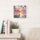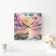 This serene square wall clock displays a tranquil lake scene at sunset, with soft pink and purple clouds reflecting on the water. A small wooden boat rests by the shore, featuring a blue bird. The inspiring "Be Still And Know That I Am God" text adds a peaceful, reflective spiritual touch to this beautiful natural landscape.