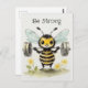 drawing of a cute little bee lifting heavy weights surrounded by flowers. Be strong