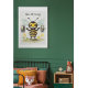drawing of a cute little bee lifting heavy weights surrounded by flowers. Be strong