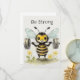 drawing of a cute little bee lifting heavy weights surrounded by flowers. Be strong