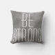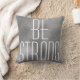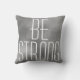 This is a beautiful light grey and white throw pillow with the words 'BE STRONG' written on both sides.