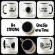 Be STRONG One Sip at a Time with a cup of strong black coffee on this black and white coffee mug. This mug is an inspirational reminder to Be STRONG each and every morning. It is the perfect gift for a coffee lover.