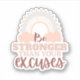 Enjoy Bella Star Unlimited Shop's motivational quote sticker, "Be Stronger Than Your Excuses". Any item can be exciting with a fun sticker. Add a little extra motivation and joy to your life with this durable custom vinyl sticker. It features modern fonts in boho inspired colours, great for your water bottles, laptops, suitcases, bumpers or anywhere you want to show your style and they will serve as a perfect reminder to live life to the fullest. The perfect gift for your friends and family.