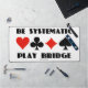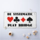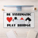 Make others do a double-take with a dose of bridge humour with this bridge attitude desk mat featuring the four card suits along with the following sound bridge advice: "Be Systematic Play Bridge". Memorable bridge humour saying desk mat for any avid bridge player or bridge teacher!
