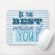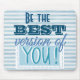 "Be the best version of you!" Motivational quote in fun typography in shades of blue.