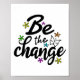 A positive and inspirational saying "Be the Change" with bold black handwritten style lettering with retro flowers and butterfly on a neutral background which you can customise to the colour of your choice.
