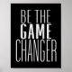Encouraging words to hang in the office with inspiring quote Be The Game Changer in bold Sans typography in white on a black background which can be changed to another color if you so wish via the Click to Customize Further option.