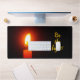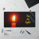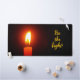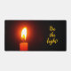 This desk mat says "Be the light!" on it and a lit candle pictured on it too.
