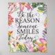 This is a beautiful motivational quote typography art prints poster featuring Be the Reason Someone Smiles Today. This product is great to hang up in anyone room. It is great to be presented as a gift.
