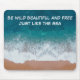 Be wild, beautiful, and free, just like the sea quote with a tropical beach photo.