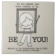 Little Boy holds a picture frame around his face and holds a paintbrush in his hand to illustrate the inspirational quote of David A. Carrizales which says, “Be the person you were created to be … BE YOU! Drawing by Christie Black of Creations from the Heart.