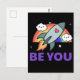 Be you. Rainbow rocket cloud with heart. Poster Postcard
