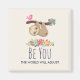 A magnet with an amusing saying: Be You the world will adjust. Designed with an illustration of a cute brown sloth hanging upside down. This funny little guy is holding onto a branch which has a little pink bird on one side of the branch and a doodle-style rose bouquet on the other side. Below them is an arrangement of colourful hand-drawn flowers. This adorable sloth also has pink rosy cheeks and 3 cute little hearts on his butt.
