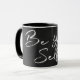 inspirational text "be your selfie" on textured black chalkboard with heart flowers