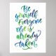 The quote "Be Yourself. Everyone Else is Already Taken." is hand-lettered in rich blues and green colours.