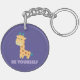 Cute motivational keychain of an adorable baby giraffe covered in daisies being happy. This keychain is designed with love by Aubergine and Purple.
