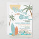Celebrate your little ones milestone with this vibrant beach-themed 1st birthday invitation. Featuring playful palm trees, surfboards, ocean waves, and a sunny backdrop, this design sets the perfect tone for a tropical celebration. Personalise with your party details and make a splash with a fun, eye-catching invite that guests will love. Ideal for summer birthdays, pool parties, or seaside gatherings, this invitation combines charm and style to create lasting memories.