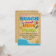 Super Fun Beach and BBQ or Barbecue party for any occasion. Features a sandy beach background, stylized fonts, beach ball, star fish, tropical drink, and sandal. Great for graduations, retirement party, family reunions, summer party, birthday or any occasion.