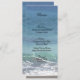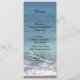 A pretty beach and ocean design with gentle waves and a touch of sandy shore accents this wedding menu card, Customize with your menu as desired.