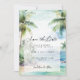 A beautiful beach and palm trees on a turquoise blue sea with string lights save the date card, with a co-ordinating reverse side. Easy to edit or delete the available text fields to personalize the information with your own details. Matching invitations and many other items in this tropical beach themed collection. Please visit my shop to see the full range or contact me if you need something with this design that is not currently listed.