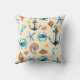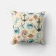 a summery tropical themed pattern filled with items from the beach. Crabs, seashells, starfish and anchors. Cream and blue colour scheme.
