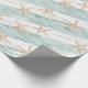 Beach Aqua Mint Starfish Stripes Birthday Wrapping Paper