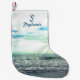 Beach Artistic Ocean Sea Blue Monogram Initial Small Christmas Stocking