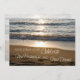 Elegant wedding vow renewal invitations featuring a beautiful photograph of the waves crashing on the beach at sunset with fully customisable text to include your vow renewal ceremony details.