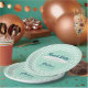 This design theme combines a mint gingham pattern with rustic retro font and a surfboard perfect for a gender neutral Baby on Board baby shower. Mix and match these paper plates with other colours and patterns for a unique design. Use the simple template to edit the text by clicking “personalise this template” and be sure to check out the rest of EmmyINK’s Beach Baby on Board Coastal Baby Shower collection for coordinating party supplies and decor!