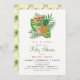 Summer tropical Hawaiian Luau themed girl baby shower invitation. Invite features beach themed pineapple and palm trees.