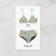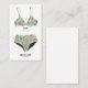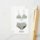 Lingerie insert card featuring tropical bikini top and bottom in blue and orange prints. Customise with the bride's bra and underwear size.
