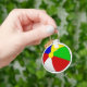 A beach ball signifies fun and this colourful beach ball design oozes fun. Featuring the colours of blue, yellow, green, red, white and orange this beach ball is a great design. The beach ball looks great on this keychain. Perfect for yourself or as a gift