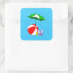 Beach Ball Pool Umbrella Blue Waves Sticker