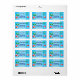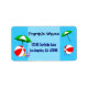 A custom address label with blue custom letters and fun beach or swimming pool themed art of a red beach ball, green sun umbrella on a watery blue background with curly waves. Customise It to change fonts, elements, label size and more, even save your design for later.