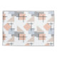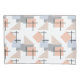 This pillowcase has a Bauhaus design of repeating rectangles, squares, diamonds, and triangles in beach colours of tan, grey, blue, and orange.
