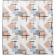 This shower curtain has a Bauhaus design of repeating rectangles, squares, diamonds, and triangles in beach colours of tan, grey, blue, and orange.