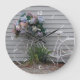 Old beach bicycle painted white with pink and blue hydrangea flowers in the basket and leaned against a grey wooden wall is pretty,nostalgic, and evokes memories of seaside vacations and innocent times.