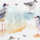 Beach Birds Seagulls on Sandy Beach with Waves Wallpaper