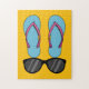 Beach Blue Flip Flops and Black Sunglasses Jigsaw Puzzle