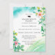 Beautiful watercolor sandy beach and sky with island botanical flowers and foliage arrangements, framed graduation party invitation.