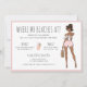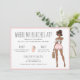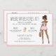 Watercolor bachelorette beach party weekend invitation features watercolor bride-to-be available in multiple hair colour options and skin shades. Event itinerary details on back of invitation. Can be customised for any event. Lingerie sizes on back for gifts or panty game.