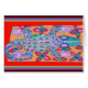 Orange, turquoise, graphic design croc on a beach blanket. Southwest, African graphic of smiling croc. Tucson, Arizona, Virginia Vivier design.