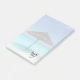 Large size sticky notes with a tropical image of a turquoise sea with a white sandy beach and a single thatched beach umbrella. Typography says Beach Bum.
